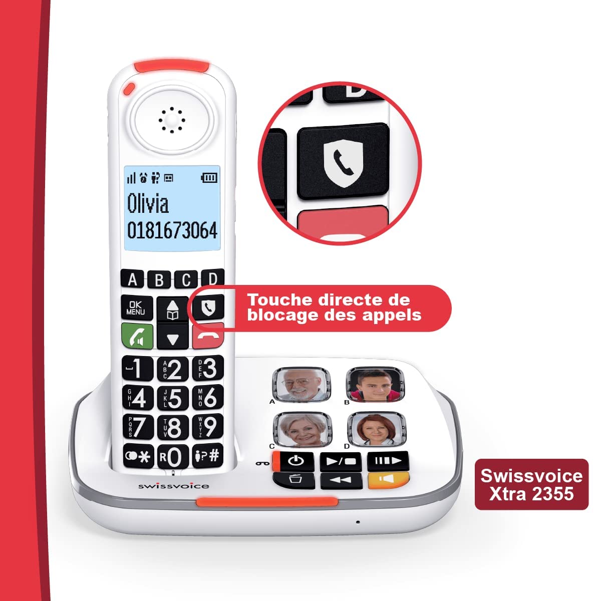 Sie können Ihrem Xtra 2355-Telefon bis zu 3 exklusive Zubehörteile zuweisen und Ihre Installation mit einem Nebenstellentelefon (Swissvoice Xtra Handset oder Swissvoice Xtra Photo), einem Ring-Repeater oder einer drahtlosen Intercom-Türklingel vervollständigen