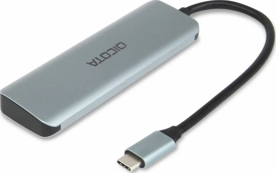 DICOTA D32061 USB Tipo C interface hub 10000 Mbit/s Plata