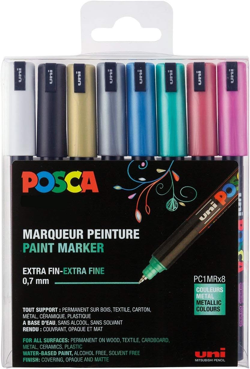 Marcador Posca Uni PC-1MR, juego de 8 marcadores metálicos