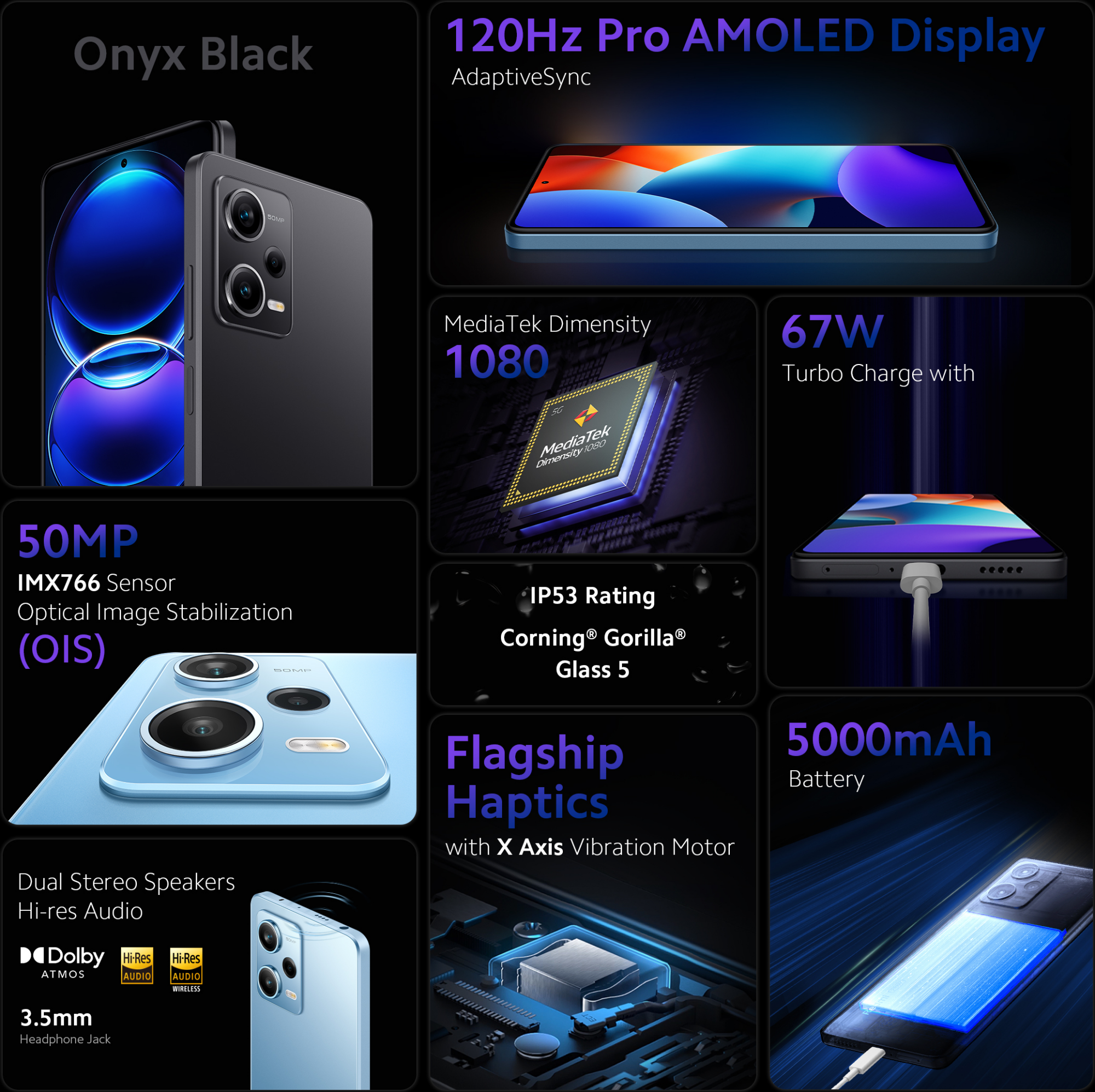 Descripción técnica: El Xiaomi Redmi Note 12 Pro 5G 6GB 128GB Dual Sim Negro es un teléfono inteligente con una pantalla de 6,67 pulgadas, una cámara trasera de cuádruple lente de 64 MP + 8 MP + 5 MP + 2 MP, una cámara frontal de 20 MP, un procesador Qualcomm Snapdragon 750G, 6 GB de RAM y 128 GB de almacenamiento interno.