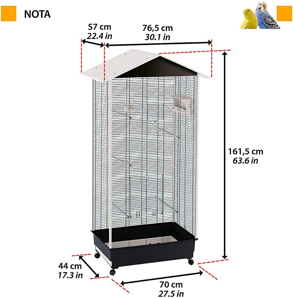 le FERPLAST Nota est une excellente option pour ceux qui recherchent une volière spacieuse et confortable pour leurs oiseaux. Avec sa hauteur de 161,5 cm, des matériaux de haute qualité, des portes avant et latérales et des roues pour un déplacement facile, cette volière est une excellente option pour garder vos oiseaux heureux et en bonne santé.