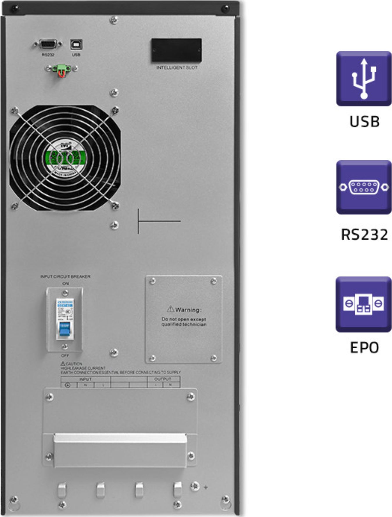 En cas de chute inattendue de la tension secteur, l'onduleur maintient le fonctionnement de l'appareil connecté grâce aux batteries intégrées, qui sont chargées en permanence. Ainsi, l'alimentation secteur n'est nécessaire que pour charger les batteries. Les appareils connectés en permanence reçoivent toujours une énergie propre, sans interférence de la batterie, de sorte que la tension de sortie de l'onduleur en ligne sera toujours constante, quelle que soit la tension d'entrée. Le temps de sauvegarde de l'équipement est de quelques minutes à plusieurs minutes, le temps de sauvegarder les données et d'éteindre l'équipement en toute sécurité.