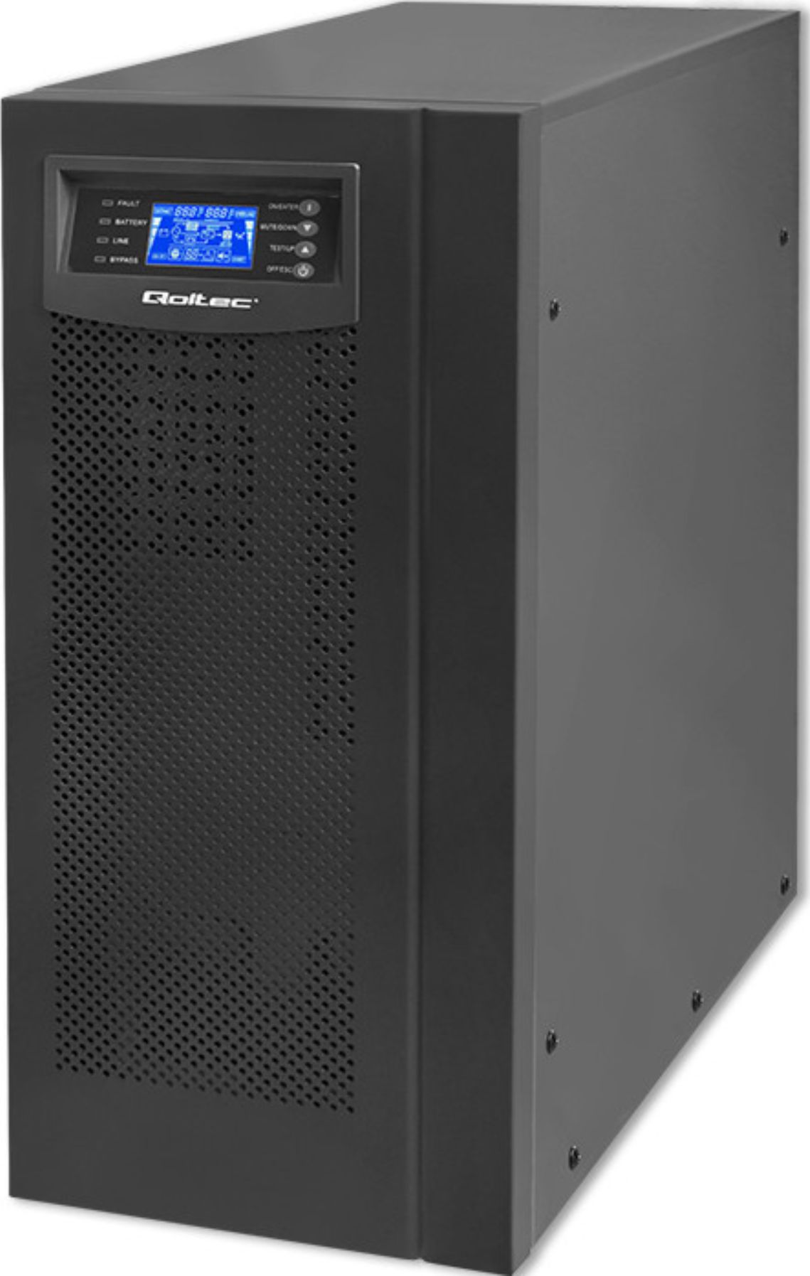 Les onduleurs en ligne de Qoltec fournissent une énergie sinusoïdale pure stable et sans interférence. C'est une protection complète pour vos appareils, grâce à la double conversion qui convertit d'abord le courant alternatif de l'alimentation secteur en courant continu, puis en courant alternatif, ce qui garantit le plus haut niveau de qualité de l'alimentation et protège contre les perturbations potentielles du secteur telles que les chutes de tension, les coupures de courant, les surtensions et les pannes.