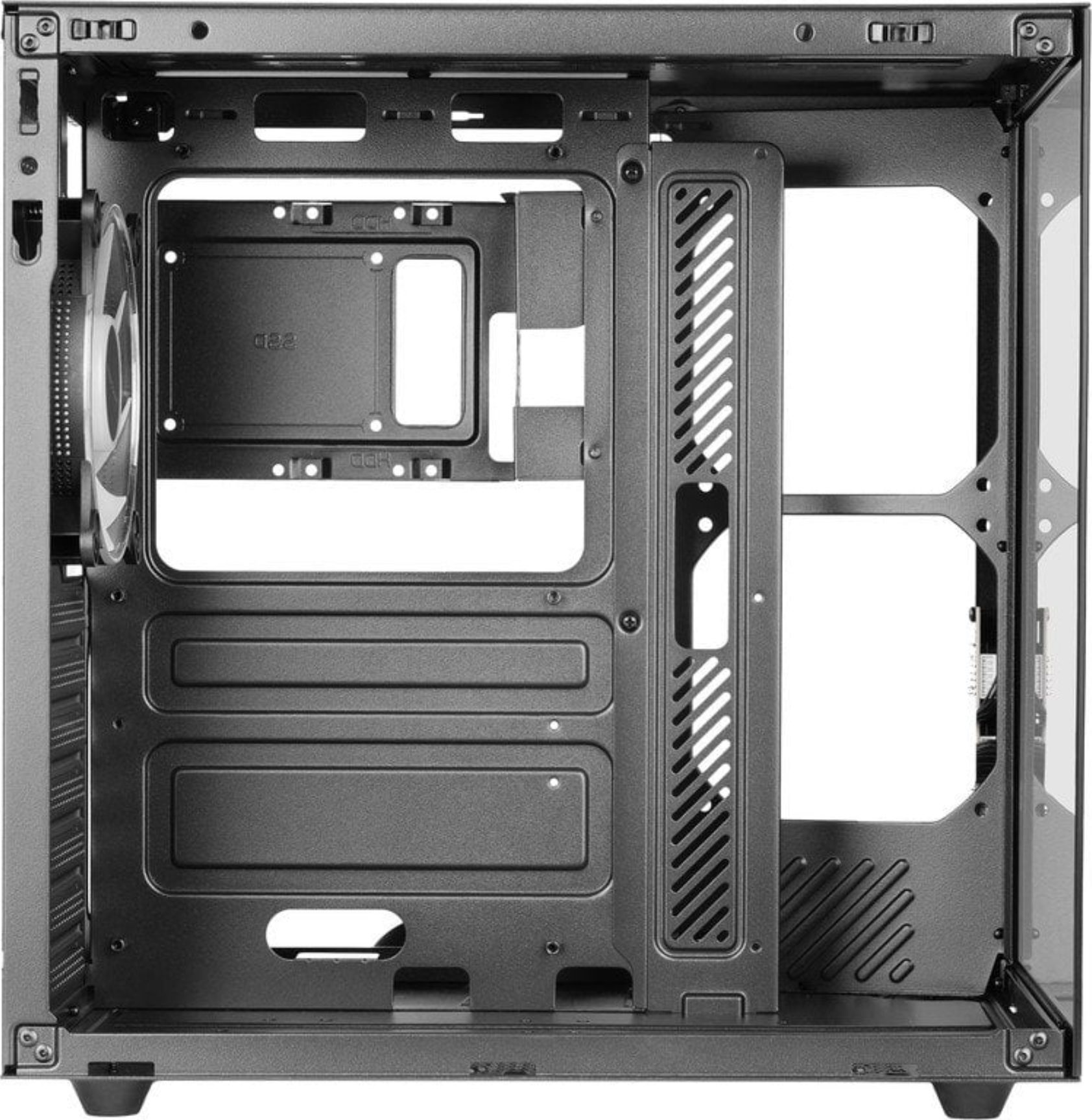 The MCV-ONE offers a wraparound view of your setup thanks to its continuous tempered glass panels on the front and sides. Its frameless design highlights the lighting and internal components, turning your rig into the centerpiece of any gaming desk.