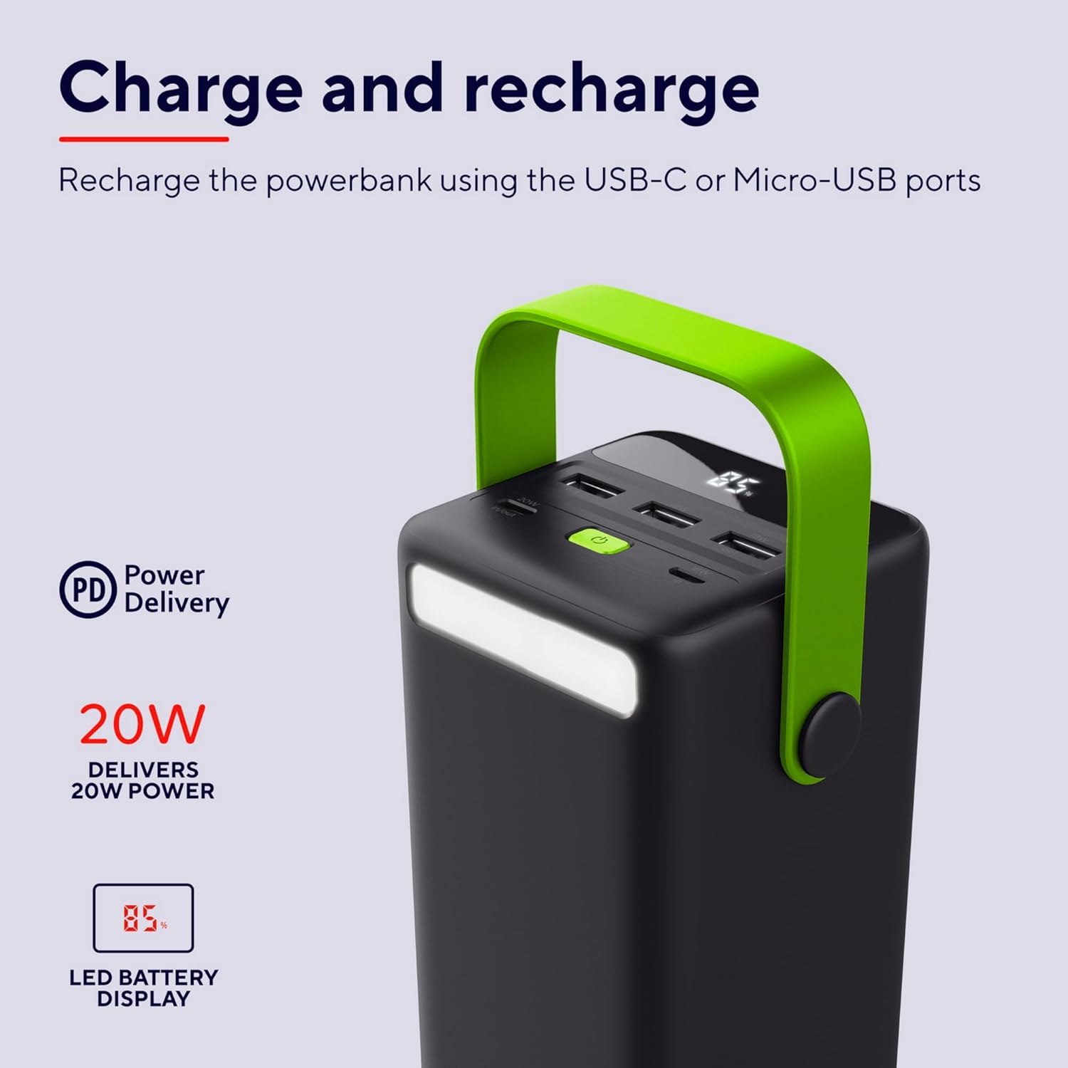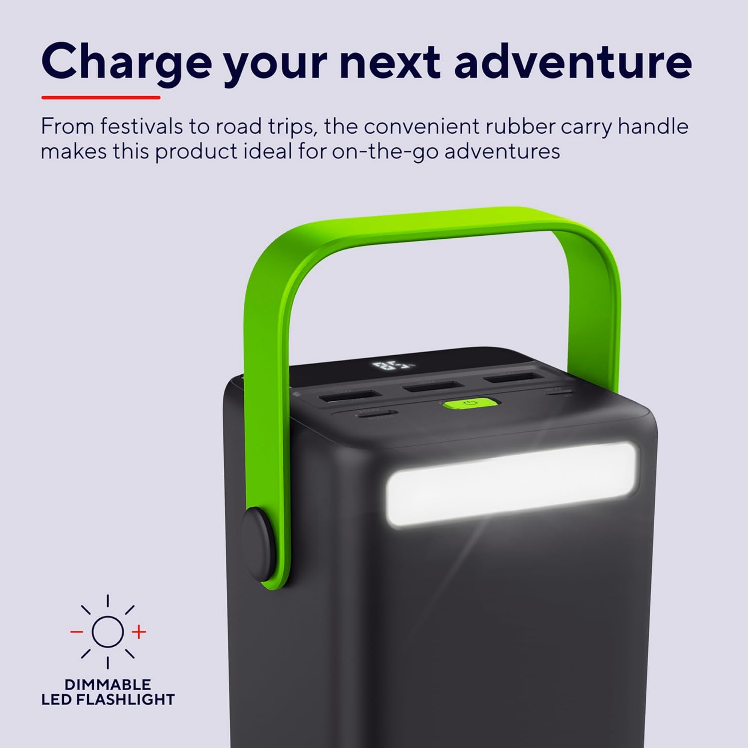 XXL high-capacity external battery of 50,000 mAh to charge the phone as many times as necessary when going camping or to festivals