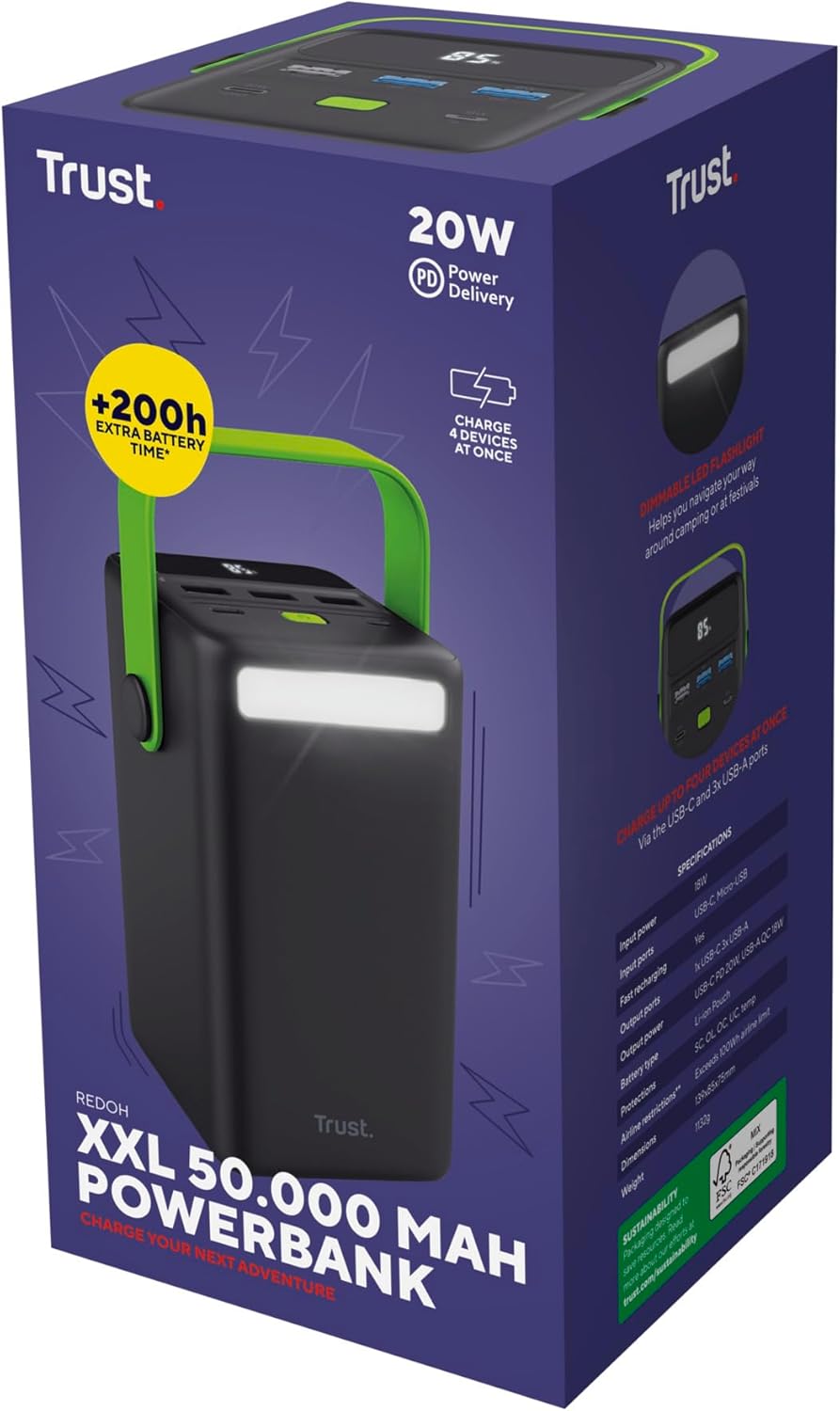 This is THE powerbank that will keep you charged as long as you need. Offering up to 200 hours of extra phone battery or 100 hours of tablet battery, Redoh XXL ensures you re always powered up and ready to go.