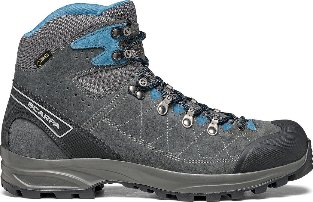 Read more...The SCARPA Kailash Trek GTX shoes in shark gray and lake blue are high-performance hiking boots designed for serious trekkers and backpackers. They feature a durable 1.8mm suede and nylon upper that combines durability with flexibility, coupled with a GORE-TEX Performance Comfort lining that provides waterproof and breathable protection to keep feet dry in all weather conditions.