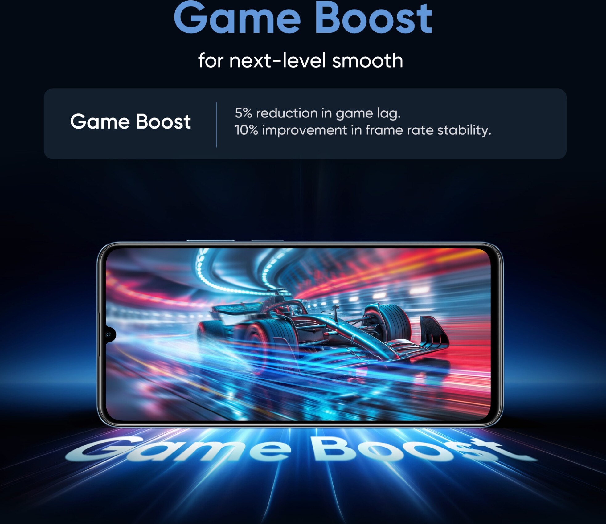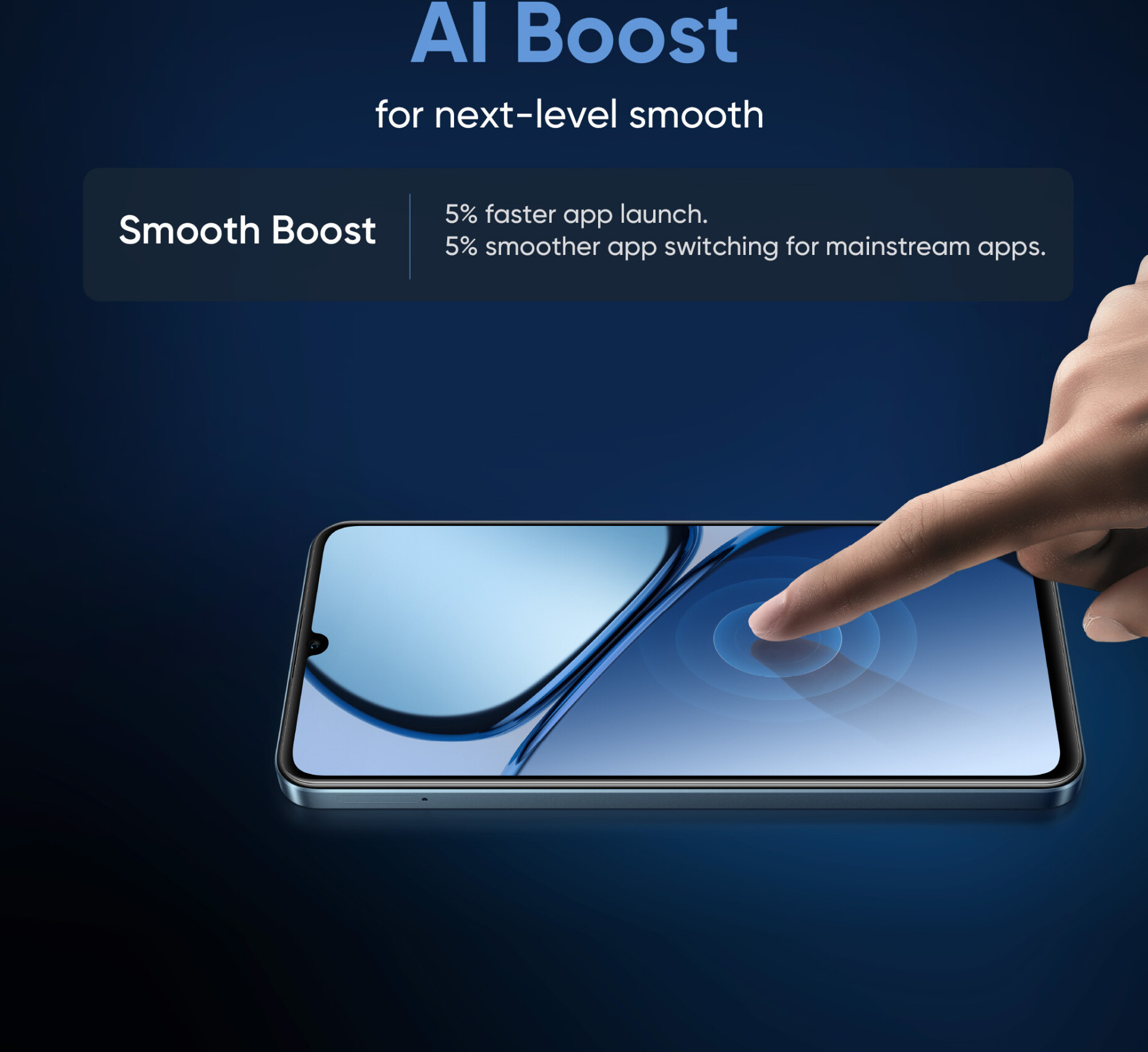 AI Boost for Next-Level Smoothness The realme C63 is equipped with AI Boost, an advanced feature dedicated to providing maximum stability during intensive gaming and multitasking.