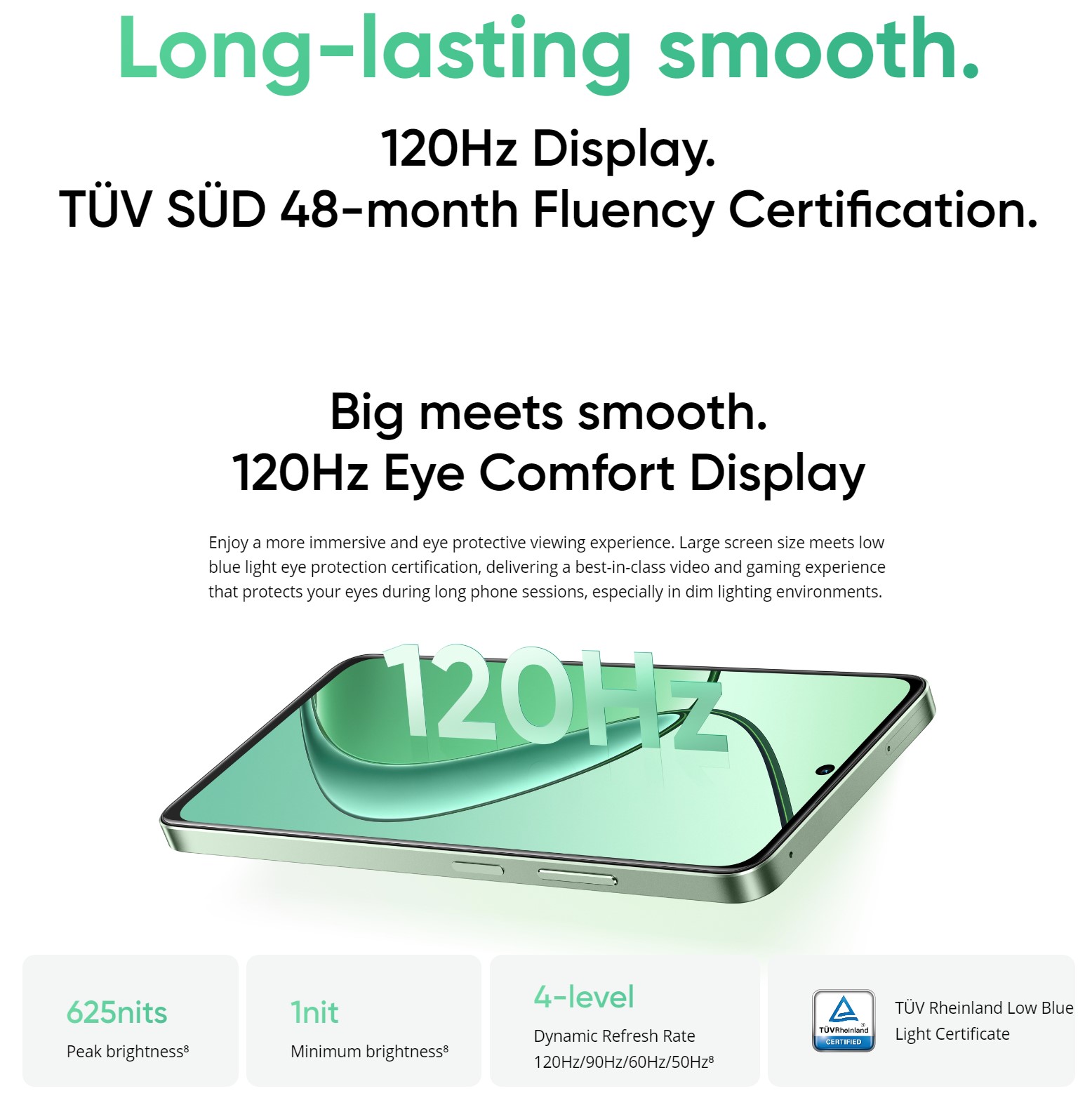 In addition, the Realme 12X 5G meets TÜV SÜD's 48-month fluidity standard , which means you will have the feeling of owning a “new phone” for at least four years thanks to software optimizations.
