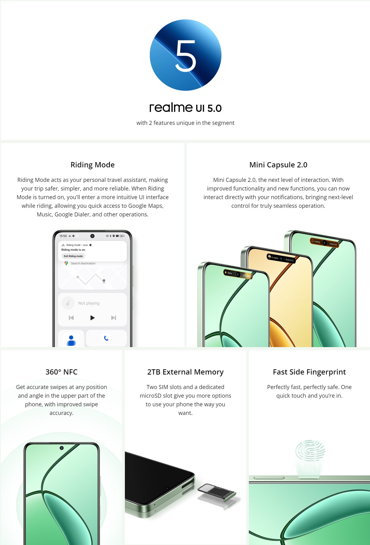 Additionally, AI Boost eliminates lag and optimizes performance for high frame rate games. And, by combining Smooth Boost and Game Boost , this Realme phone provides a comprehensive phone experience for multitasking and gaming without interruptions.