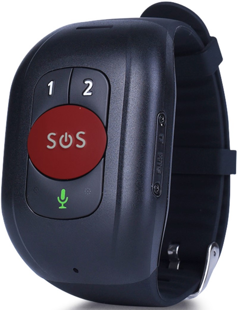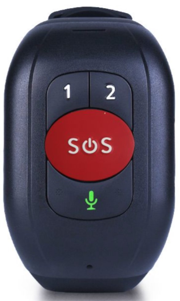 A large SOS button has been established in the central part of the device that allows the person wearing the bracelet to quickly press it if necessary to contact the pre-configured number by telephone.