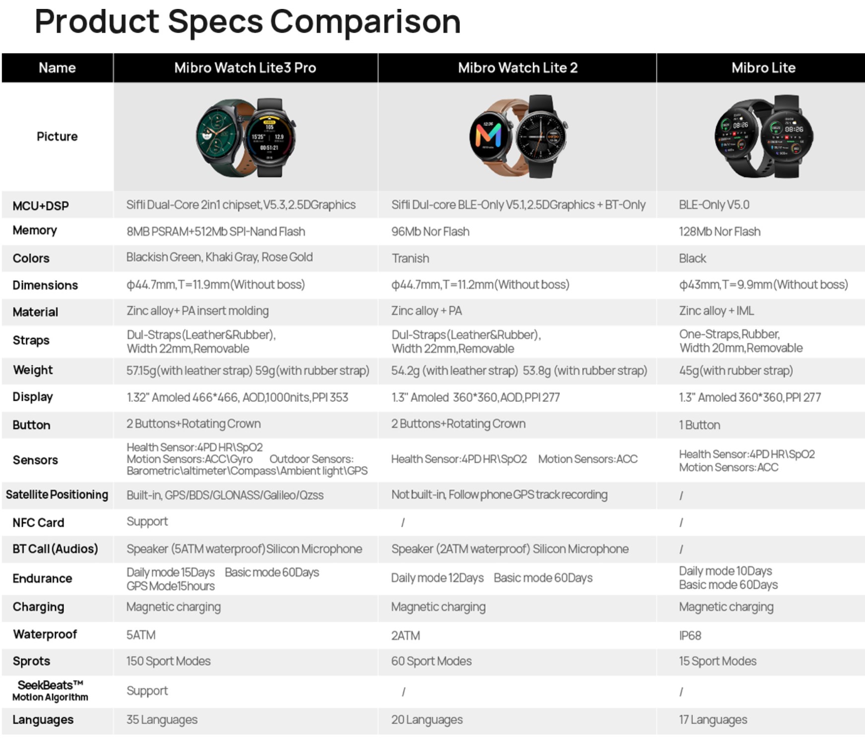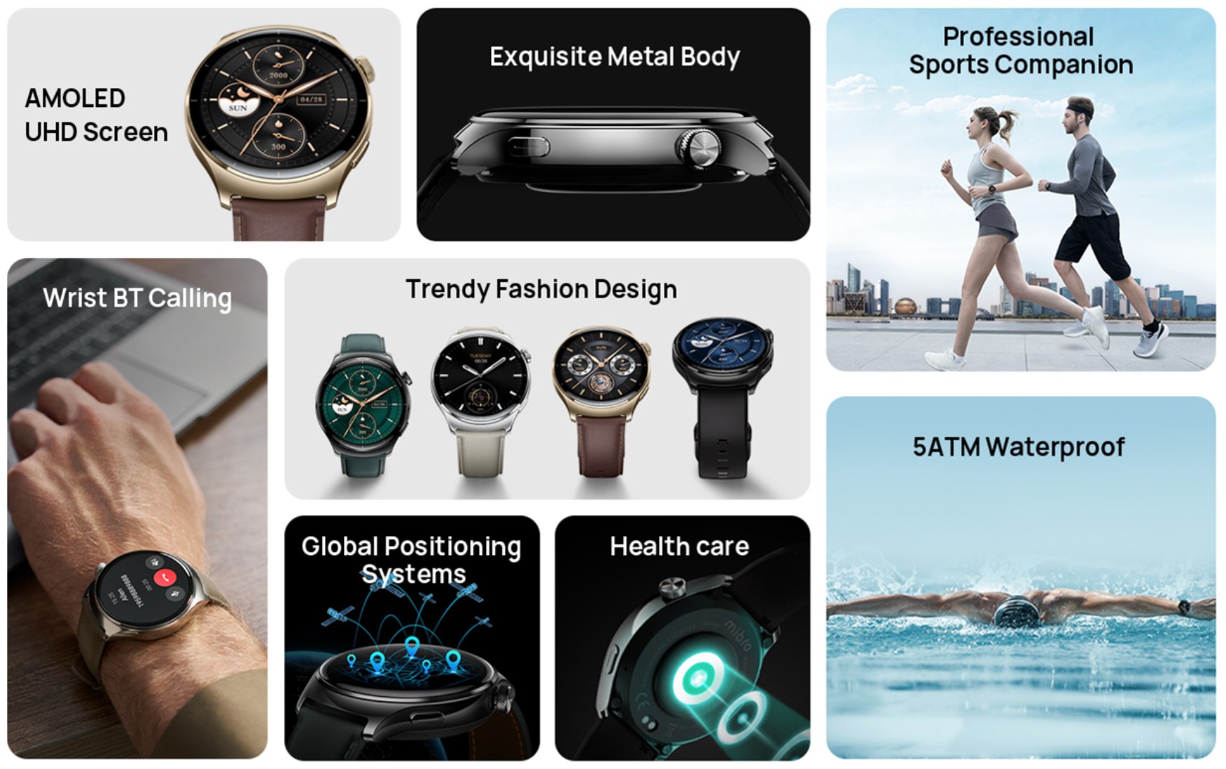 The Mibro Watch Lite 3 Pro features a sleek and modern design, with a 1.3-inch AMOLED display that offers a resolution of 360 x 360 pixels. This display provides vibrant colors and exceptional clarity, allowing for optimal readability even in direct sunlight. Its body is ultra-thin, with a thickness of just 9.8 mm, making it light and comfortable to wear all day long.