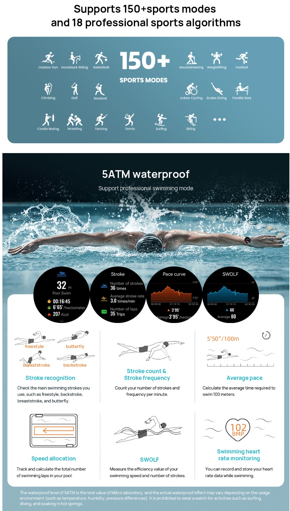 In addition, the watch features 14 sports modes, allowing users to track various activities, from running and swimming to cycling and gym training. Thanks to its IP68-certified water resistance, you can use it without worry during your most intense workouts or even while swimming.