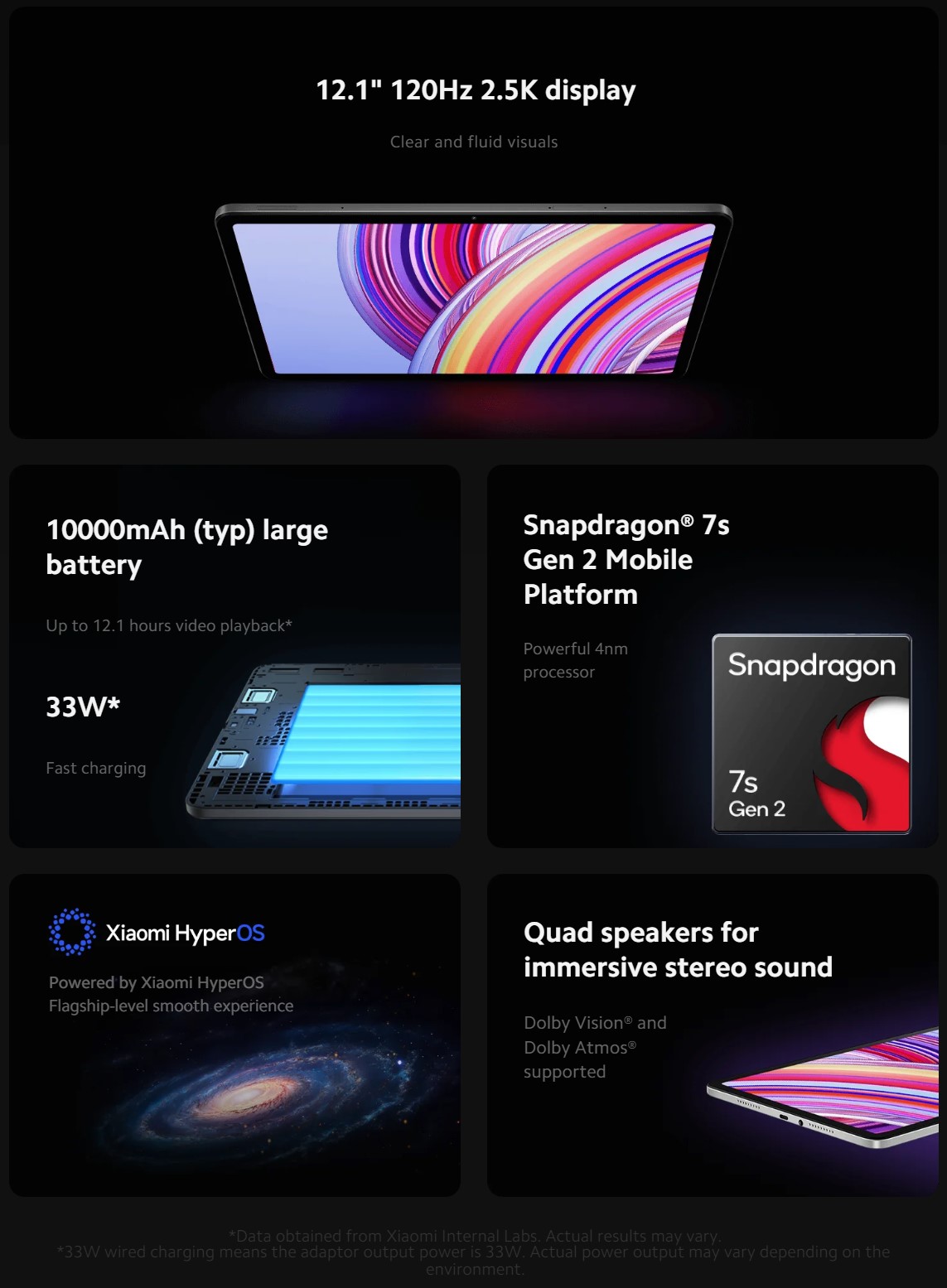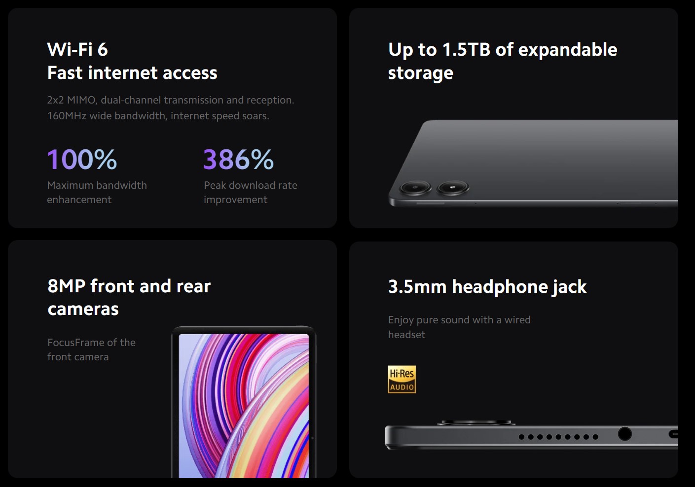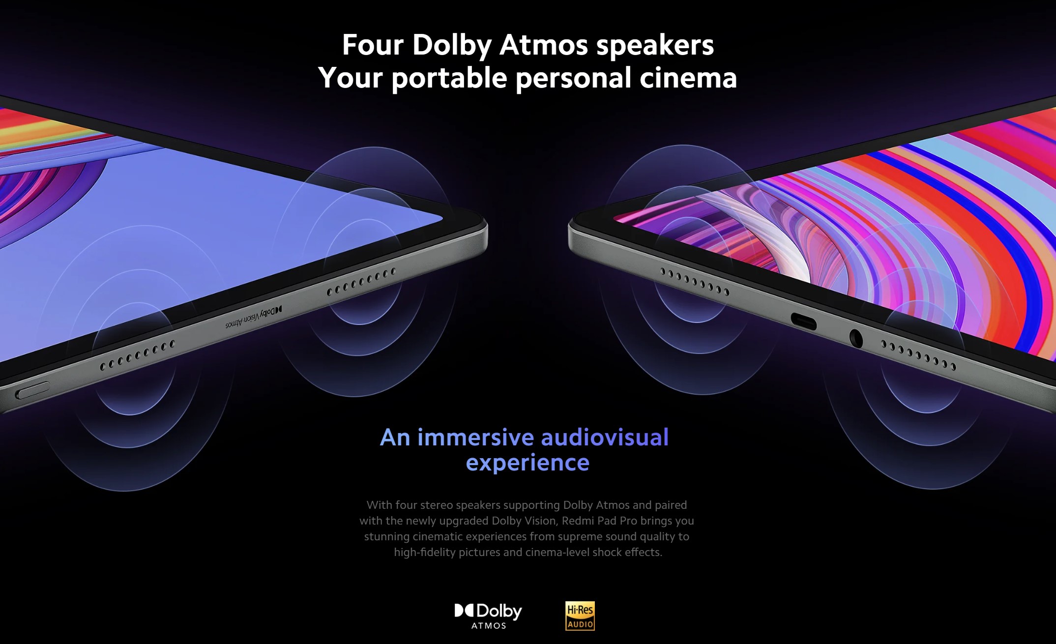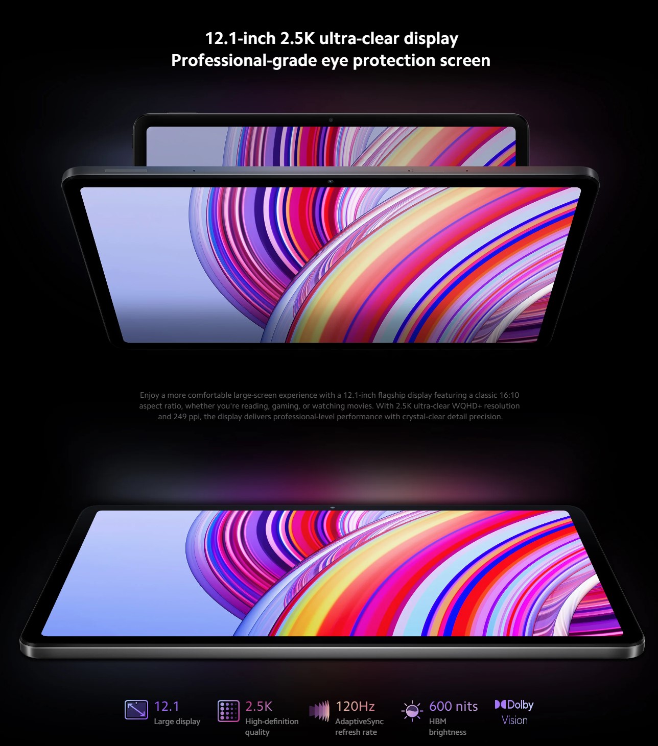 With four Dolby Atmos-compatible stereo speakers combined with the newly improved Dolby Vision technology, Redmi Pad Pro delivers stunning cinematic experiences, from superior sound quality to high-fidelity visuals and stunning cinema-level effects.