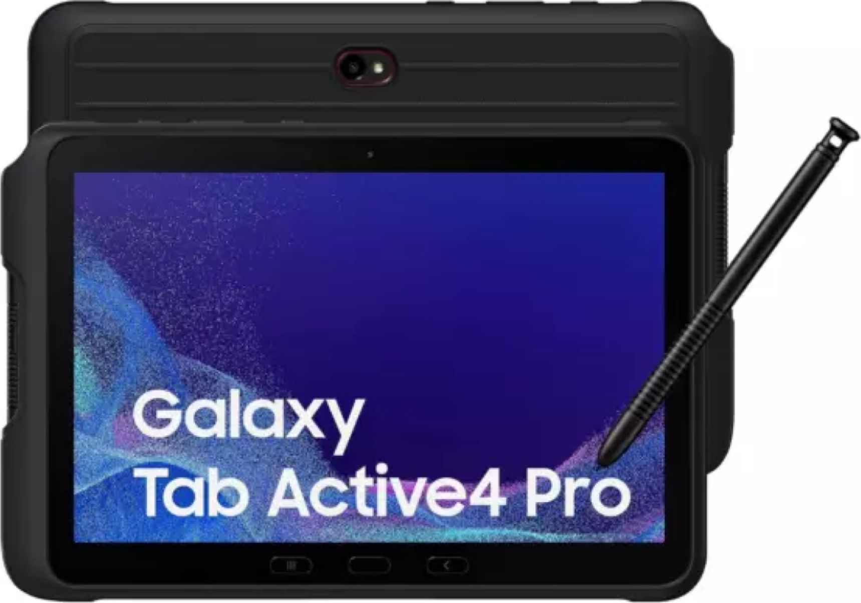 Samsung Galaxy Tab Active4 Pro SM-T636B. Diagonal screen size: 25.6 cm (10.1"), Display resolution: 1920 x 1200 Pixels. Internal storage capacity: 128 GB. Processor frequency: 1.8 GHz, Processor family: Qualcomm Snapdragon, Processor model: 778G. Internal memory: 6 GB. Rear camera resolution (numeric): 13 MP, Rear camera type: Single camera, Front camera resolution (numeric): 8 MP, Front camera. Wi-Fi standard: Wi-Fi 6 (802.11ax). Integrated reader card. Weight: 674 g. Colour of product: Black