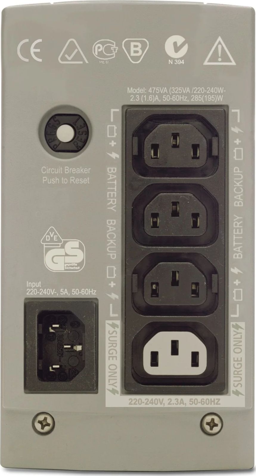 APC Back-UPS CS 325 w/o SW, 0.325 kVA, 210 W, 320 J, Sealed Lead Acid (VRLA), 6 h, Beige